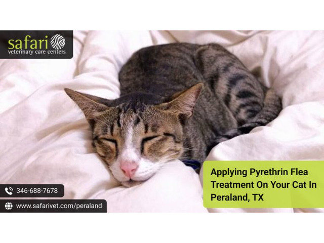 Applying flea treatment on your cat in Pearland, TX? Be cautious with products containing Pyrethrin. Cats are highly sensitive, and misuse can cause poisoning. At Safari Veterinary Care Centers, Pearland, our vets offer safe alternatives and professional flea treatment services.